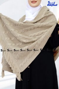 “شال كتف تريكو تركي، مصنوع من خامة عالية الجودة، مثالي للشتاء ولمسة جمالية عصرية، استمتعي بدفء أكثر.”