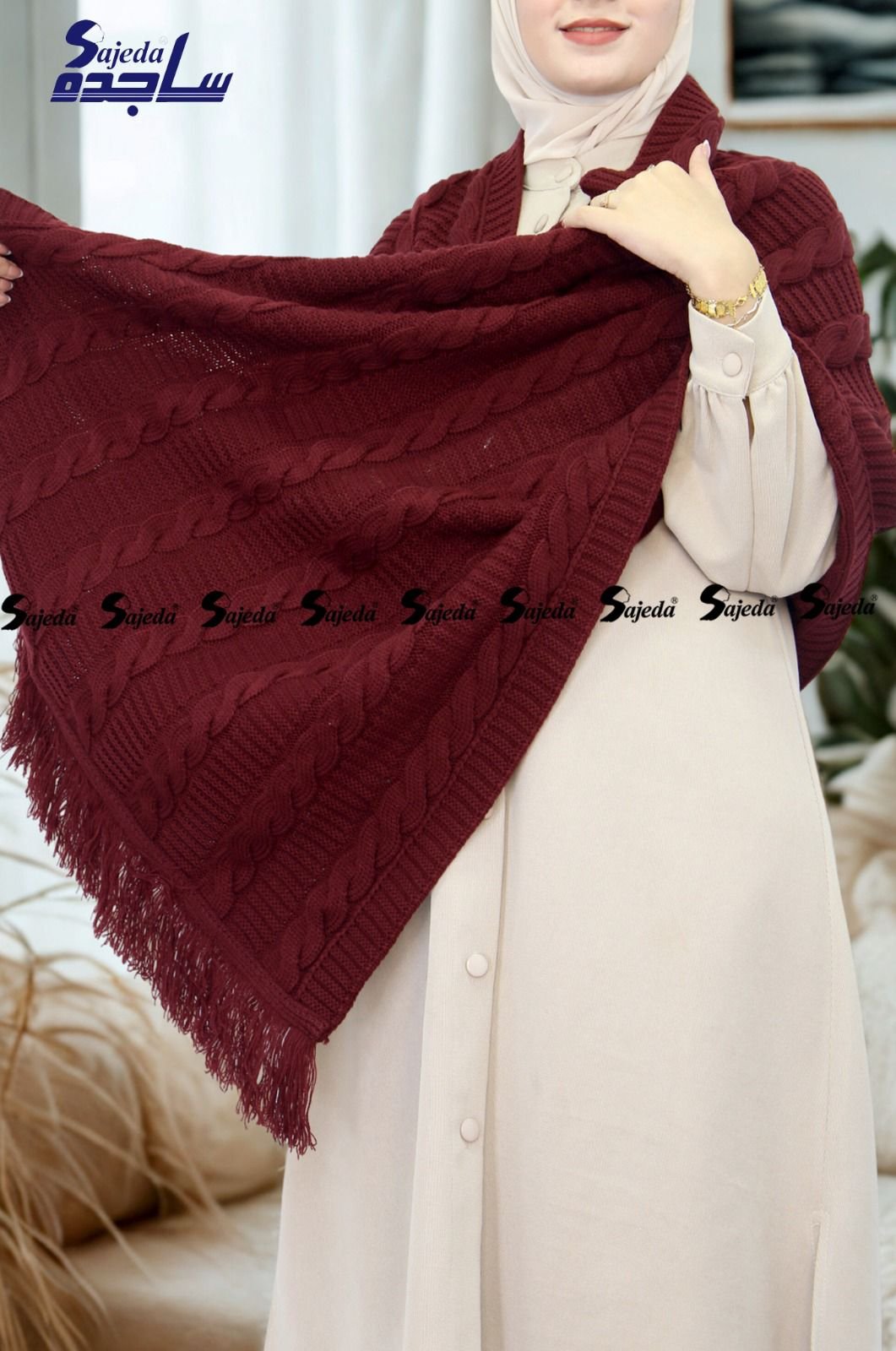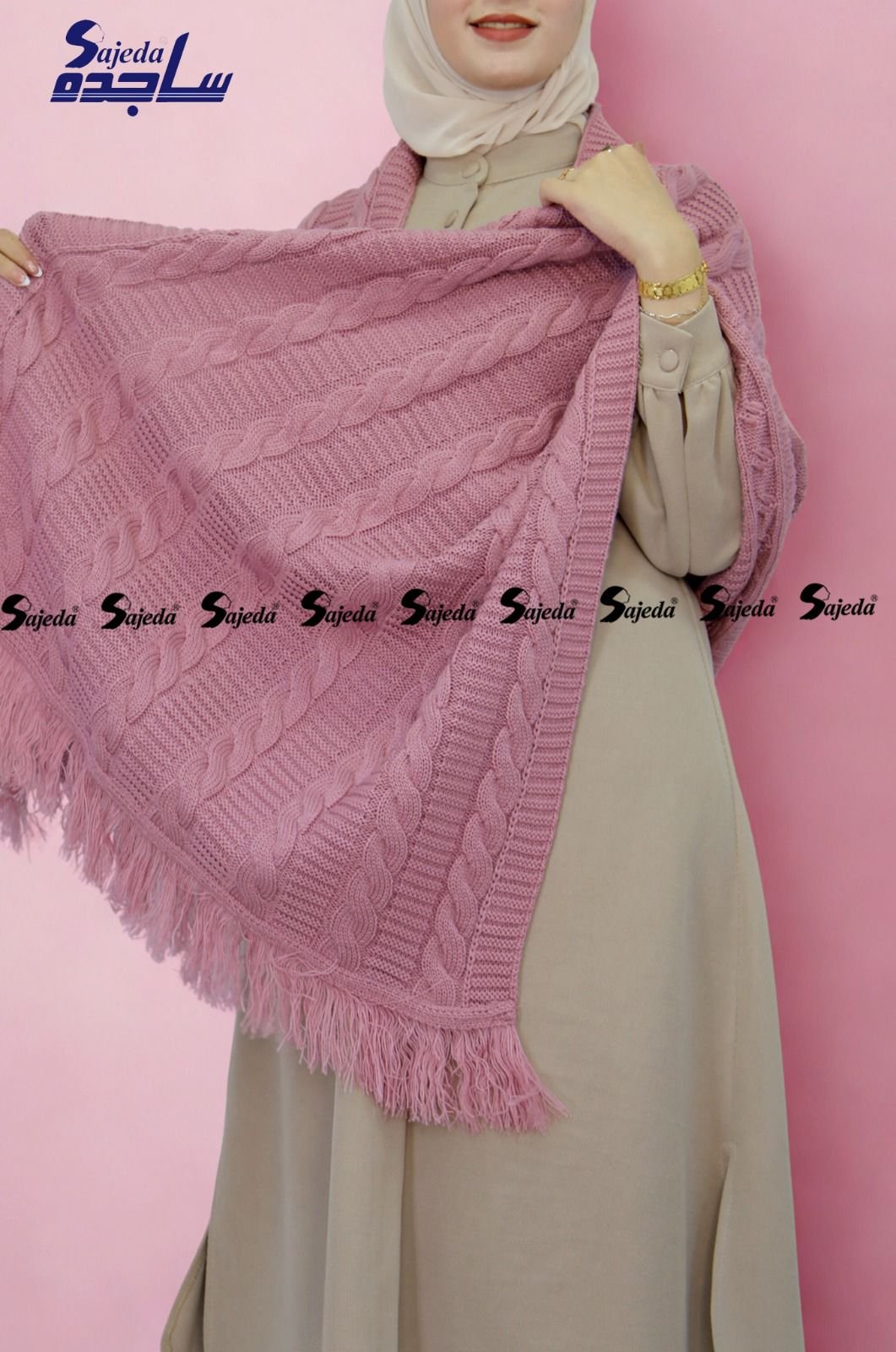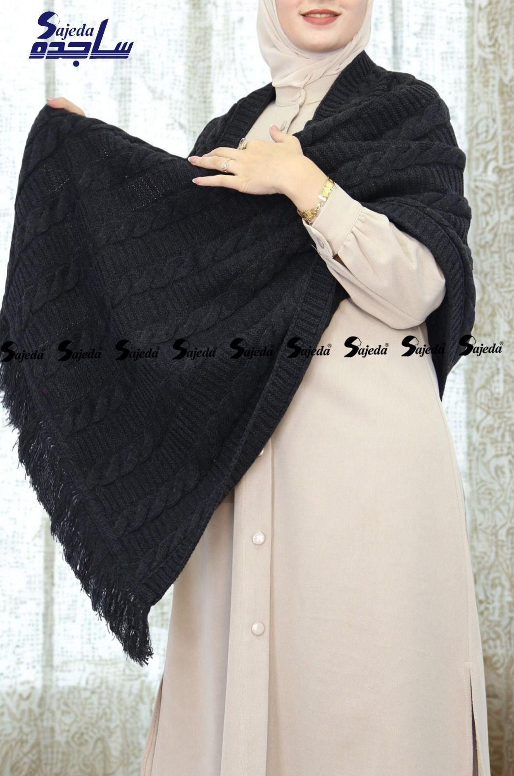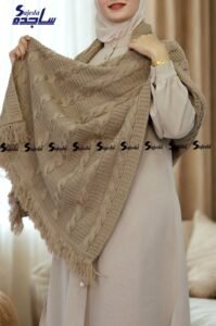 “شال كتف تريكو تركي، مصنوع من خامة عالية الجودة، مثالي للشتاء ولمسة جمالية عصرية، استمتعي بدفء أكثر.”